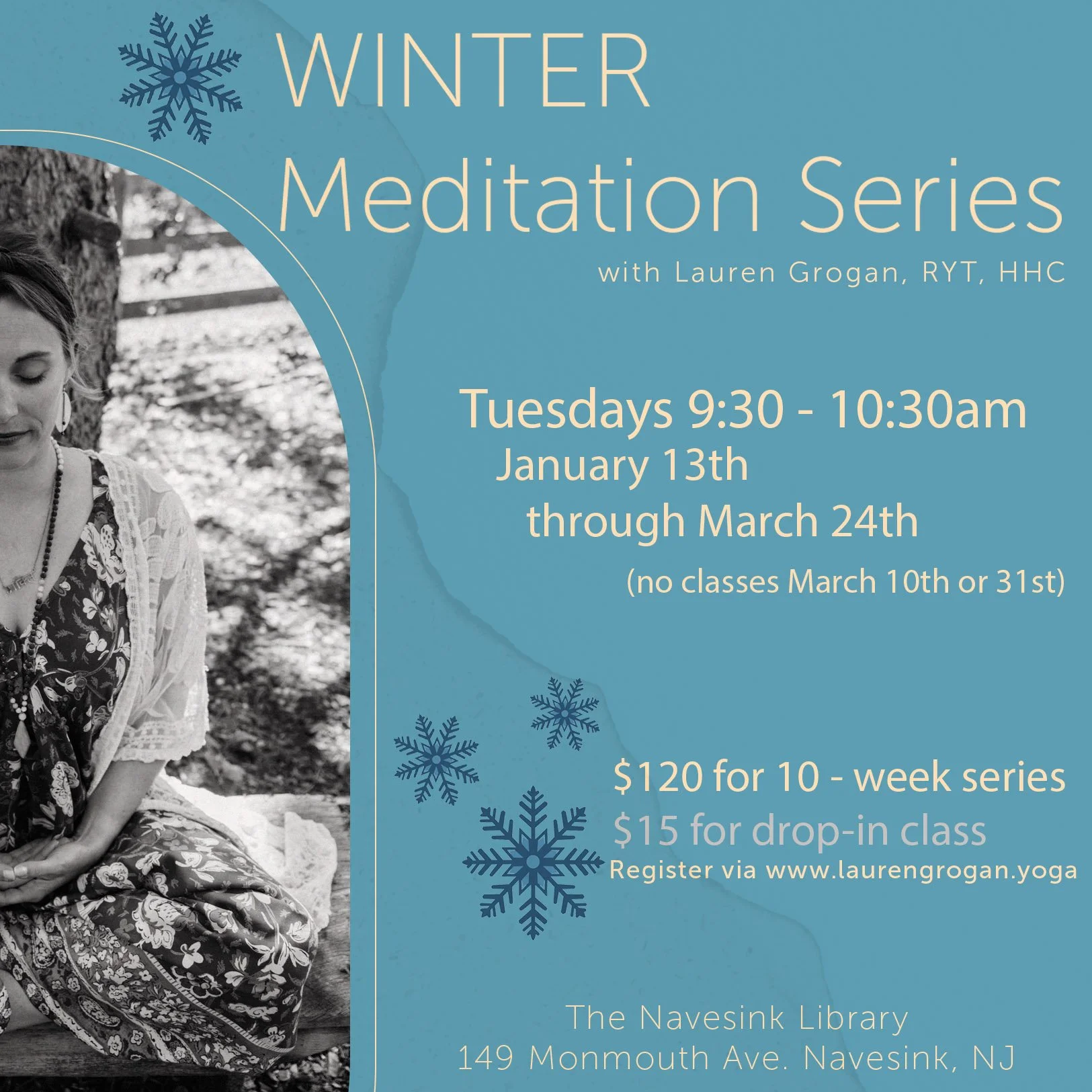 Winter can feel long and disconnected, especially when we’re spending more time indoors. This 10-class winter meditation includes 60-minute sessions together in the library with guided meditation, easy mindfulness practices, gentle breathing, and time for group sharing. Classes are relaxed and supportive, with tools you can actually use in daily life. No meditation experience is needed. Chairs are provided, and all are welcome.